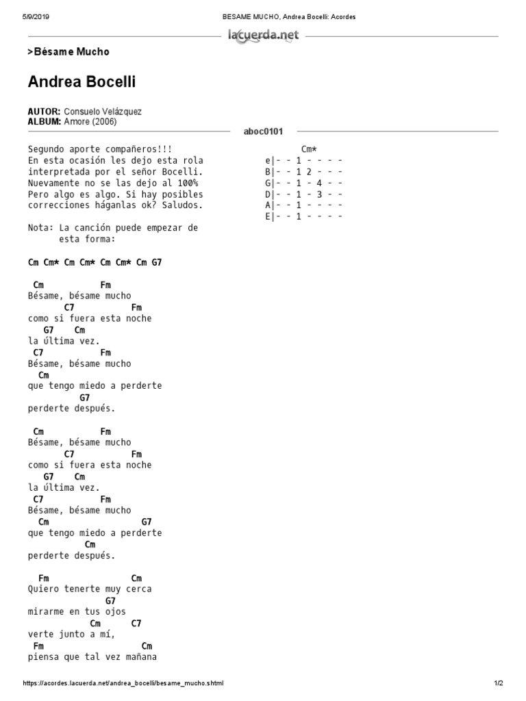 Besame Mucho Acordes Guitarra - Dm gm besame, besame mucho, d7 gm como si fuera esta noche a7 dm la última vez.