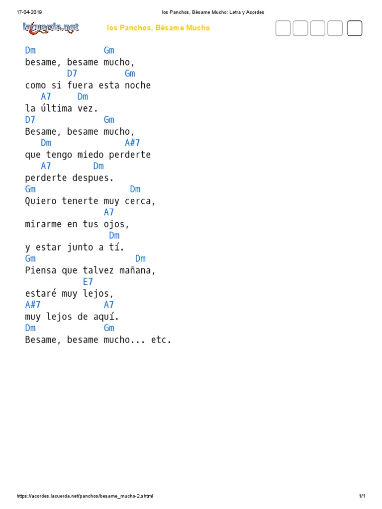 Letra De Besame Mucho : Besame, besame mucho, que tengo miedo perderte, perderte despues.