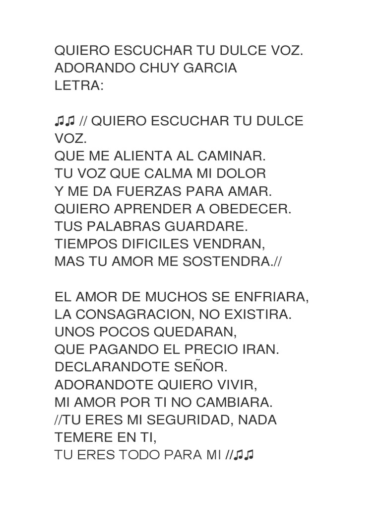 Quiero Escuchar Tu Dulce Voz Letra : Quiero escuchar tu dulce voz.
