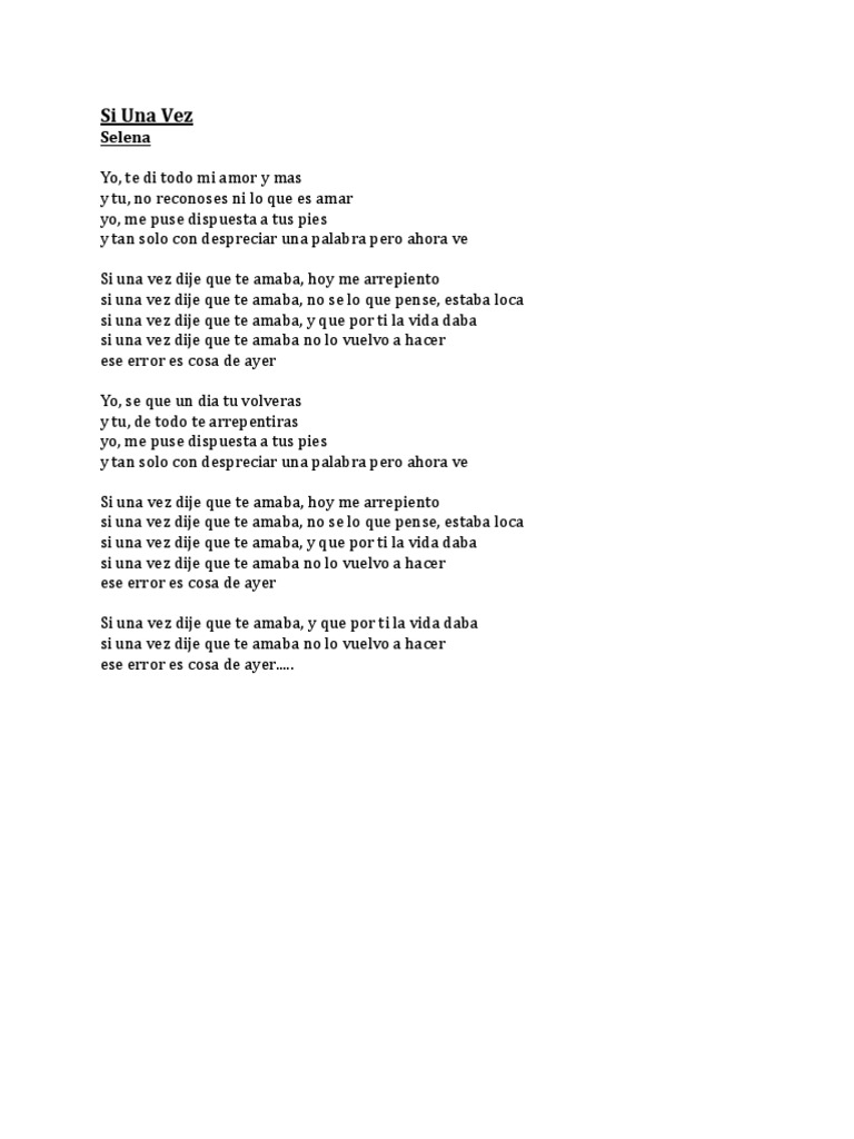 Si Una Vez Selena Letras Yo, te di todo mi amor y mas, y tu, no reconoces ni lo que es amar.