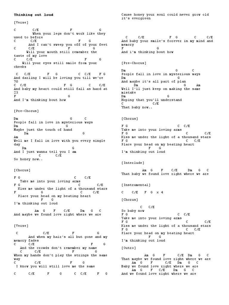 Skitarrate Accordi Testi Thinking Out Loud Sheeran Ed When your legs don't work like they used to before.