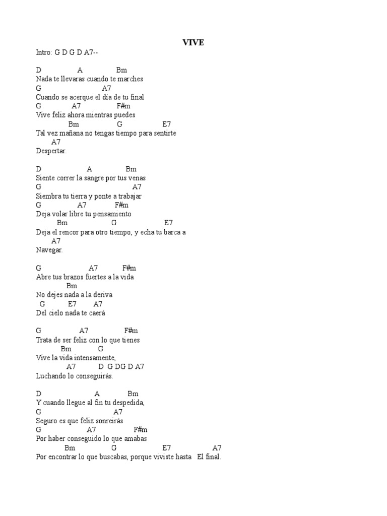 Vive Napoleon Letra Y Acordes / G bm7 em nada te llevaras cuando te marches c a7 d7 cuando se acerque el día de tu final c d7 bm7 vive feliz ahora mientras puedes.